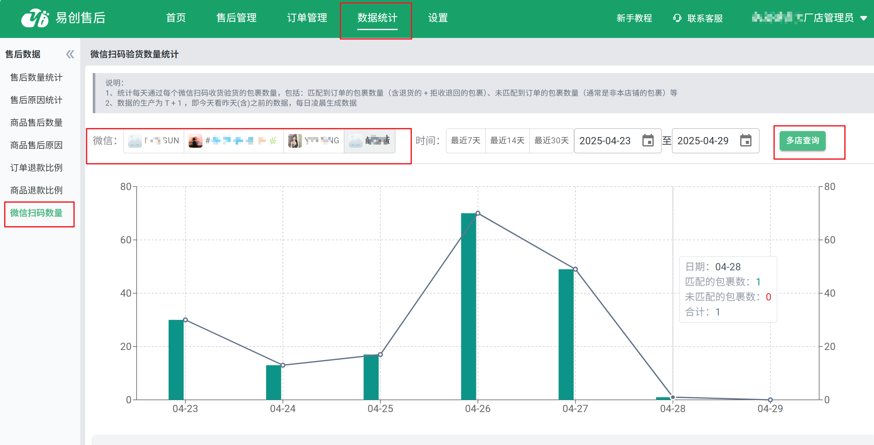 3)微信扫码售后数据