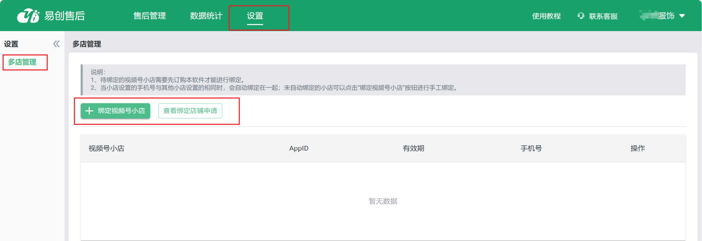 4、对方小店登录本软件,在设置——多店管理页面接受邀请,绑定完毕。