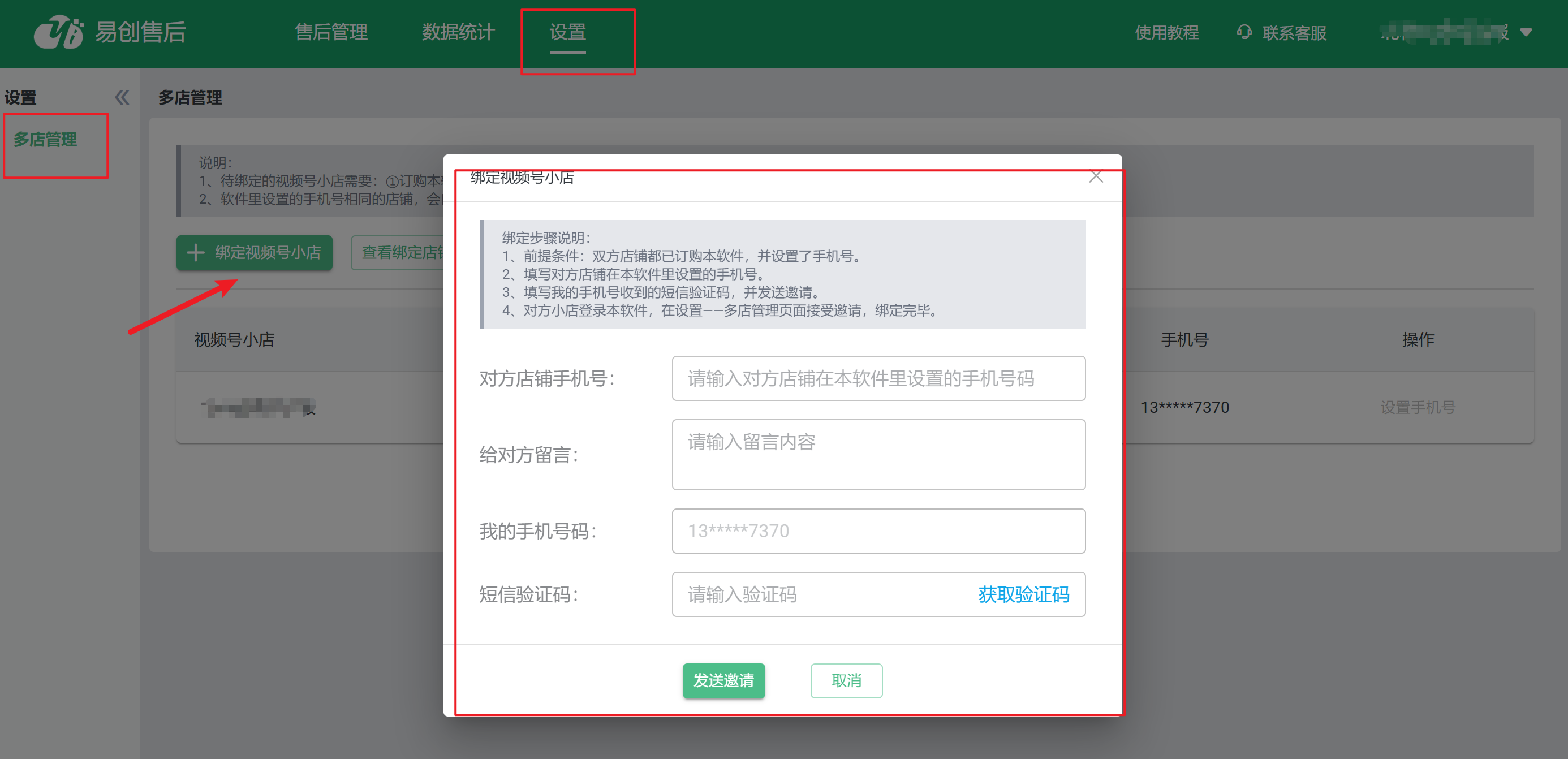 1、前提条件:双方店铺都已订购本软件,并设置了手机号。